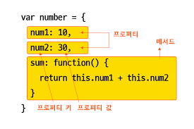 자바스크립트에서 사용할 수 있는 모든 값은 프로퍼티가 될 수 있다. 자바스크립트 함수는 일급객체이므로 값으로 취급할 수 있다. 프로퍼티 값이 함수일 경우, 일반 함수와 구분하기 위해 메서드라고 부른다.